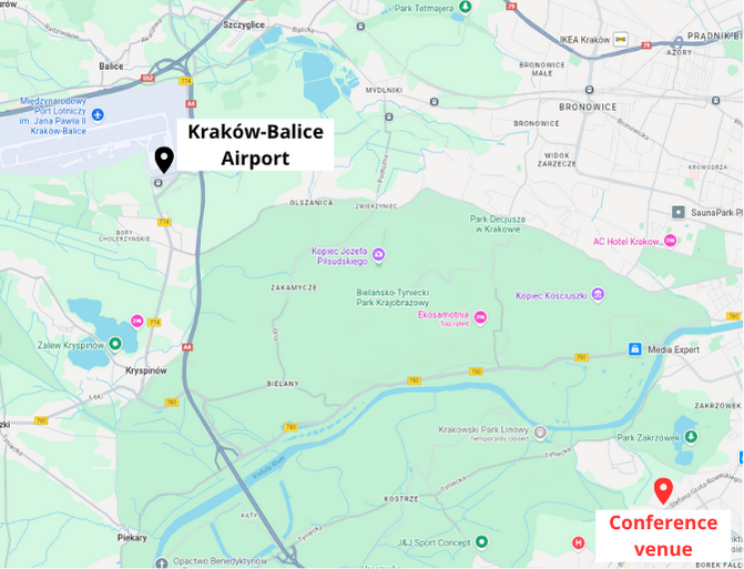 Getting to the Faculty of Physics, Astronomy and Applied Computer Science of the Jagiellonian University (FAIS), located at Łojasiewicza Street 11, and to the Convictus Hotel, located at Łojasiewicza Street 2, in the immediate vicinity of FAIS